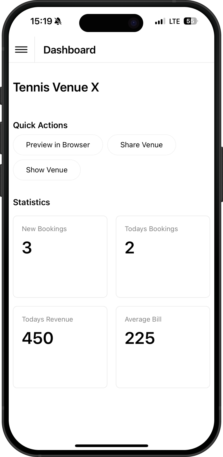 Once you sign-up, you instantly receive a link to page of your venue, where your clients can book slots and get information needed